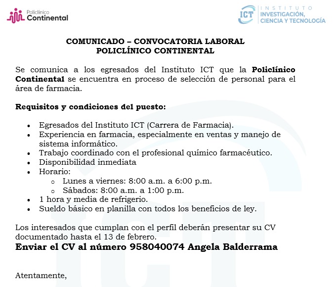 CODIGO DE VACANTE: ICT-FAR-014